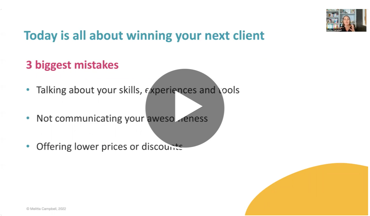 + You'll get a workbook that will help you get clear on the exact next steps to take now, to get your Next Dream Client at the end of the free training.